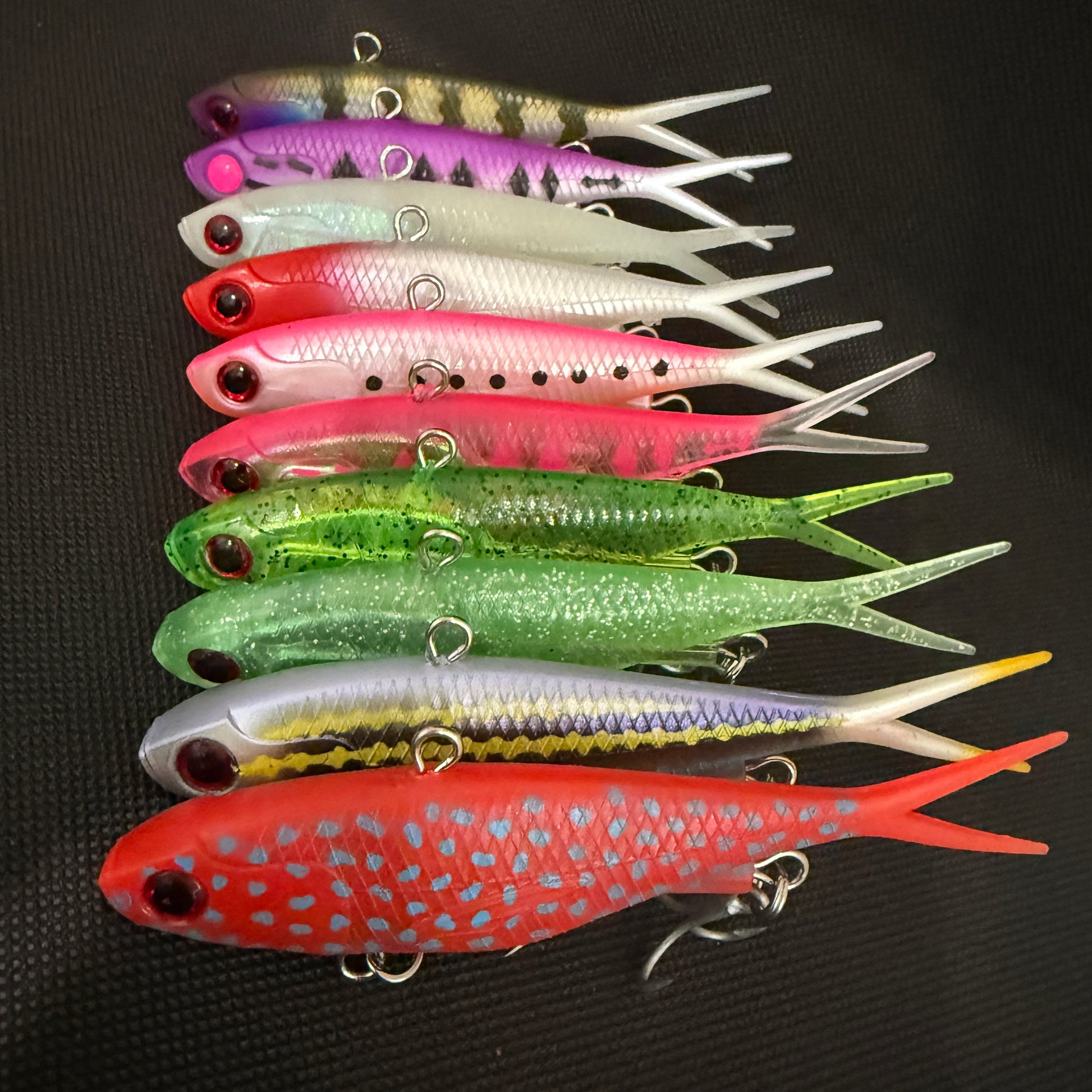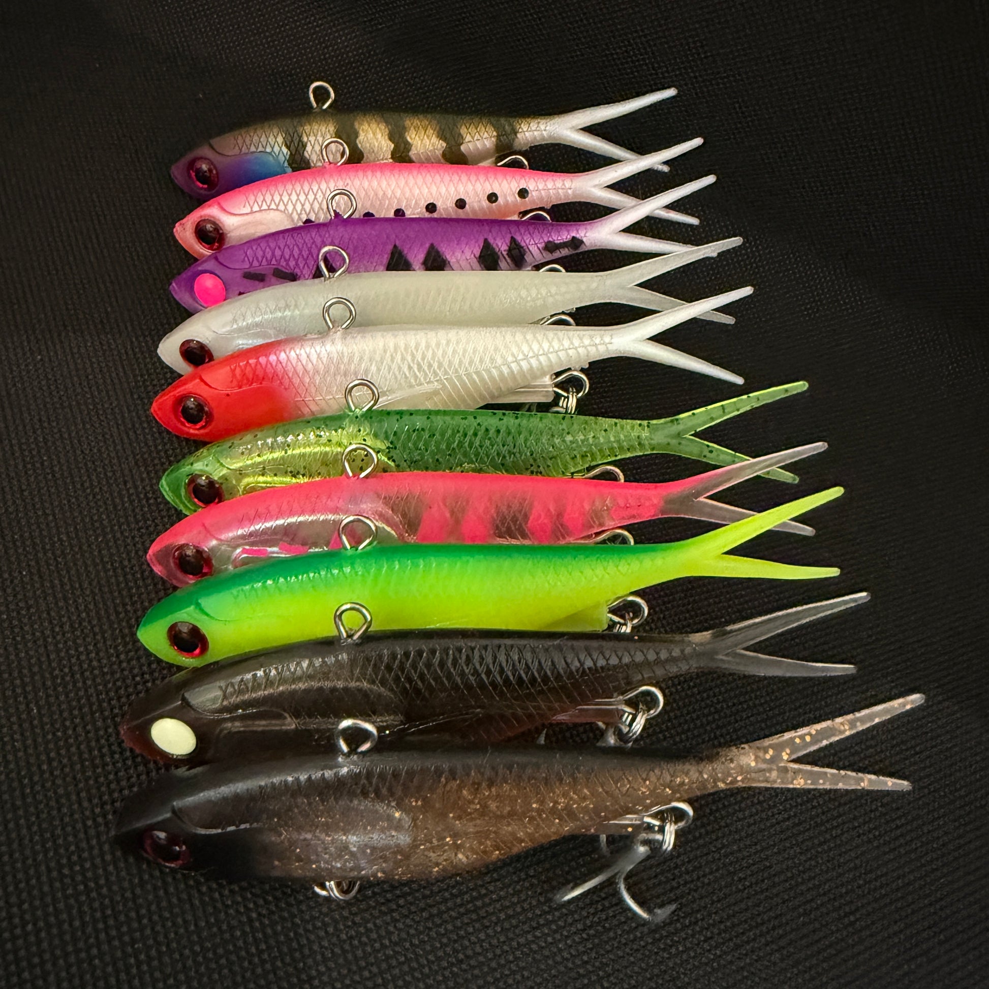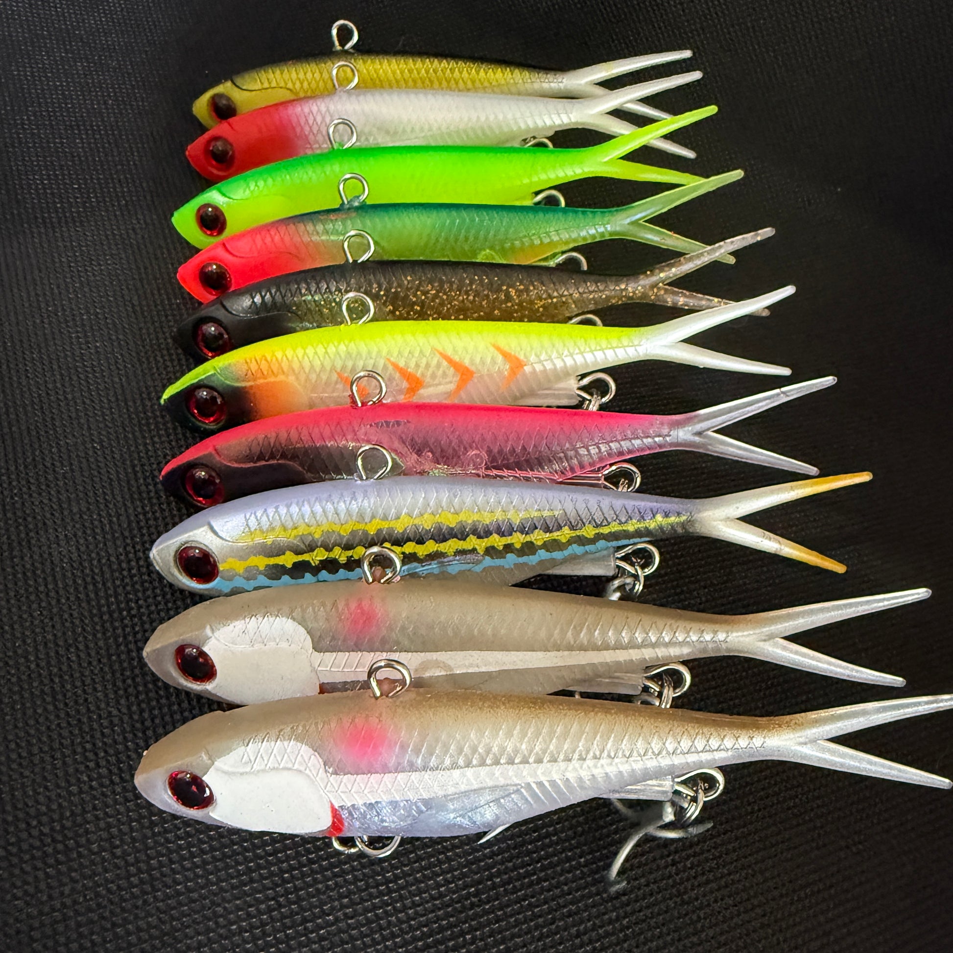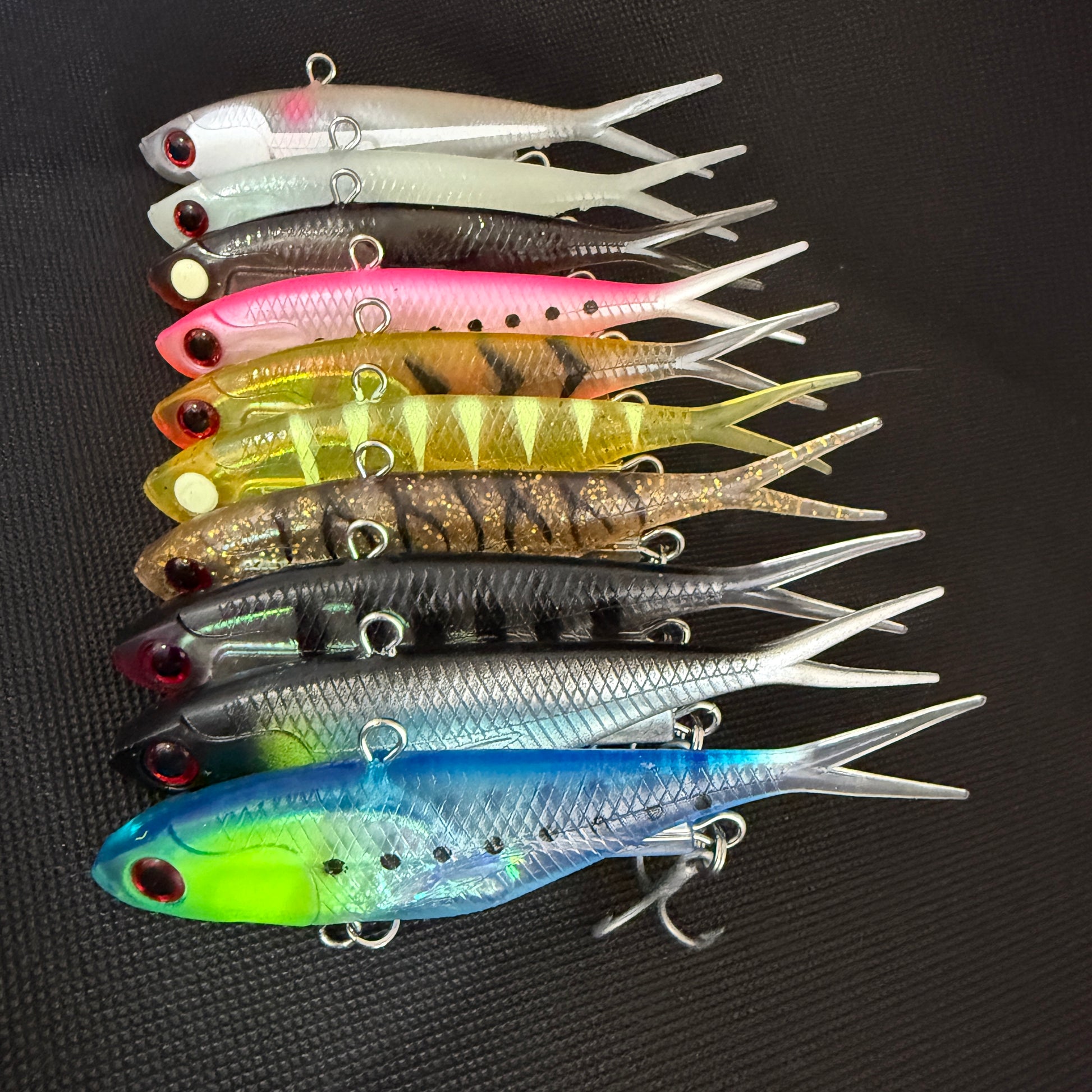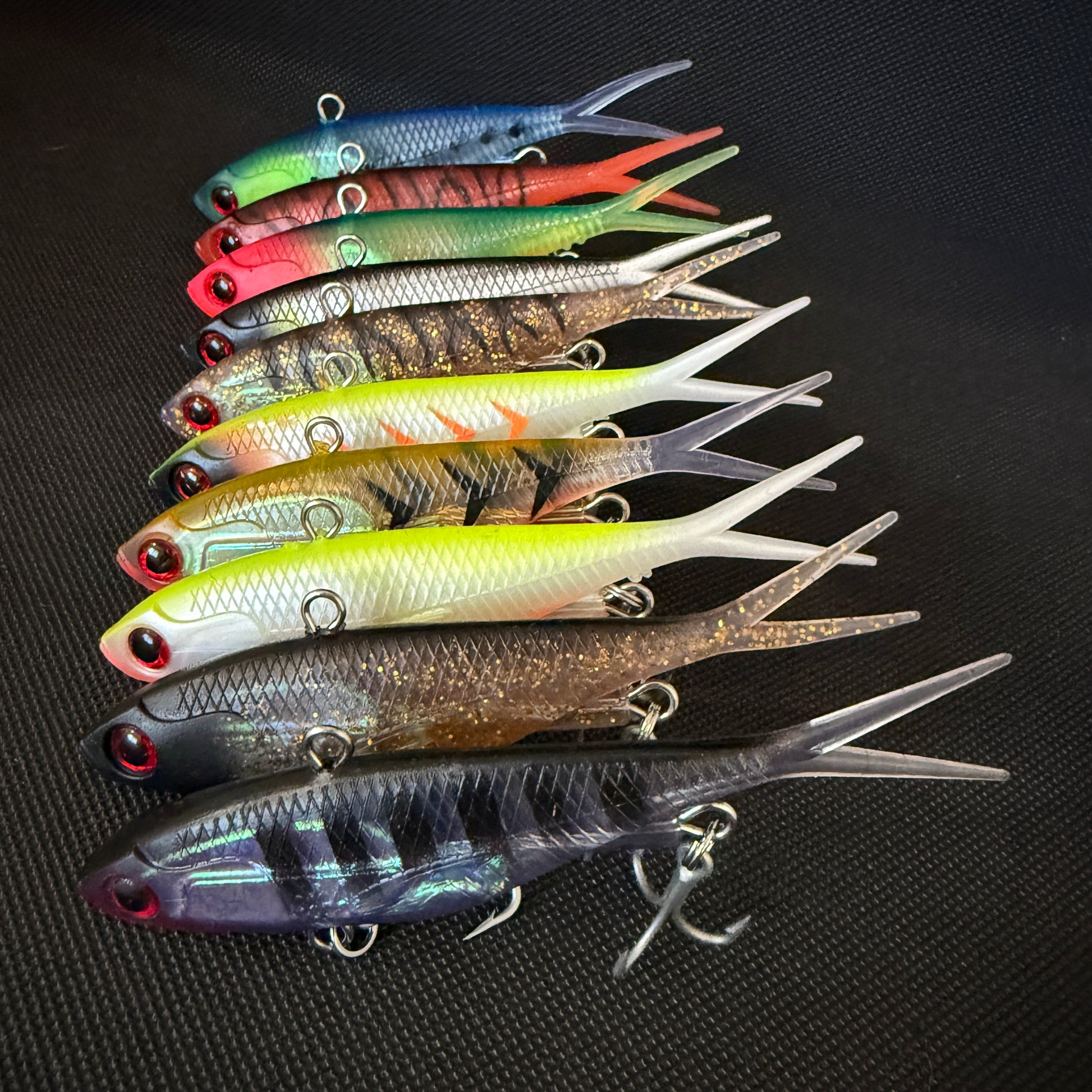 The 45g Weapon Box is made for when you need to punch through current, drop deeper, or chase fish that live in the heavy stuff. Each 115mm / 45g vibe in this pack is rigged tough and ready to get slammed ~ from reef thugs to angry barra in deep drains.