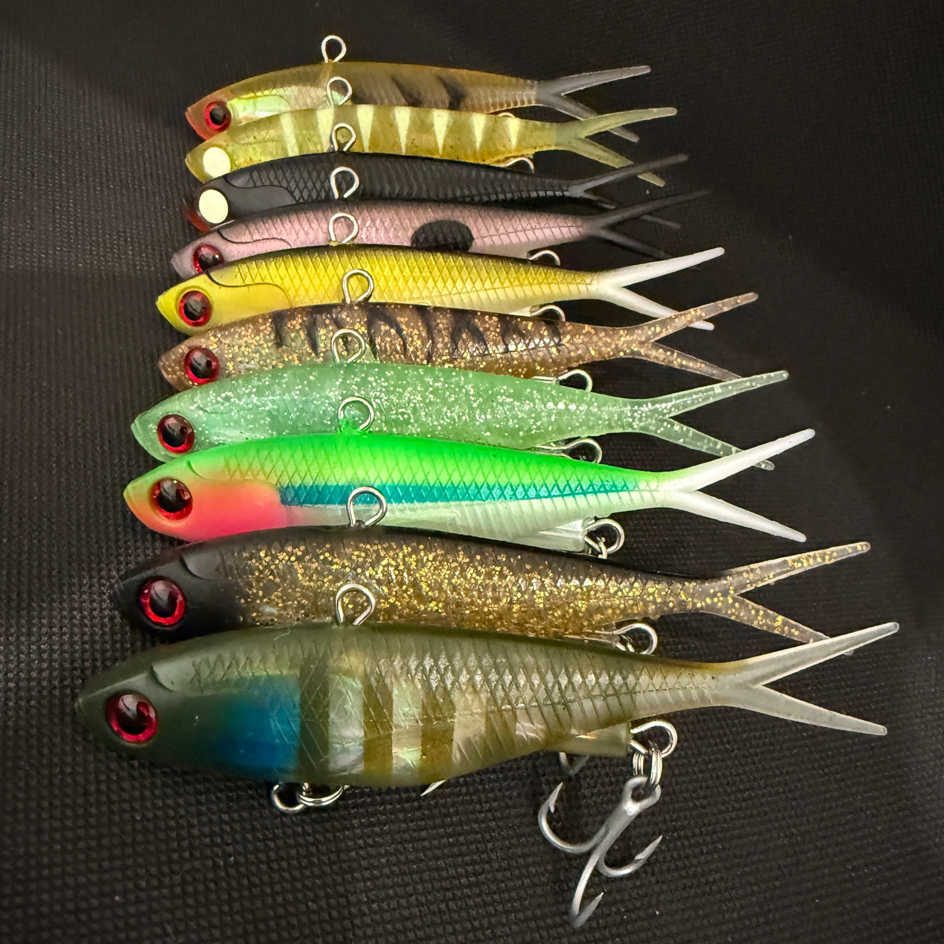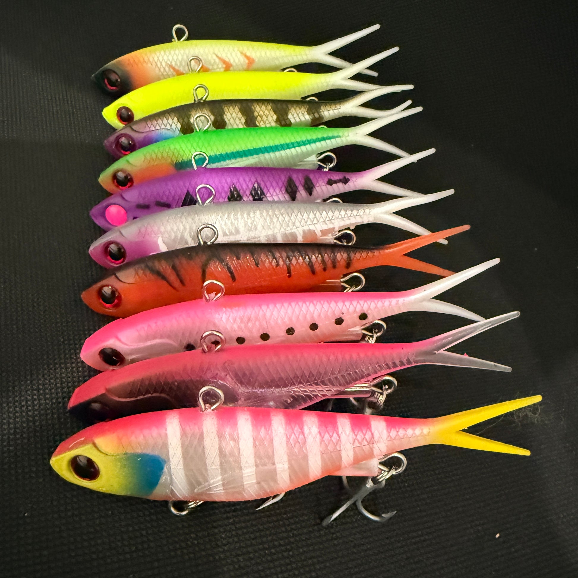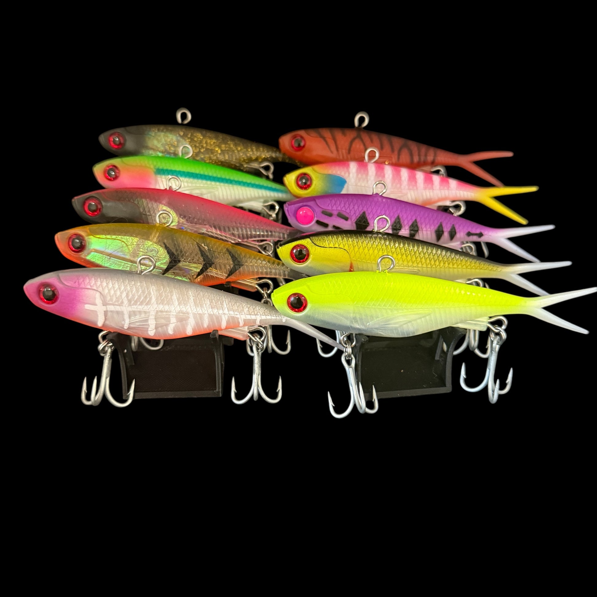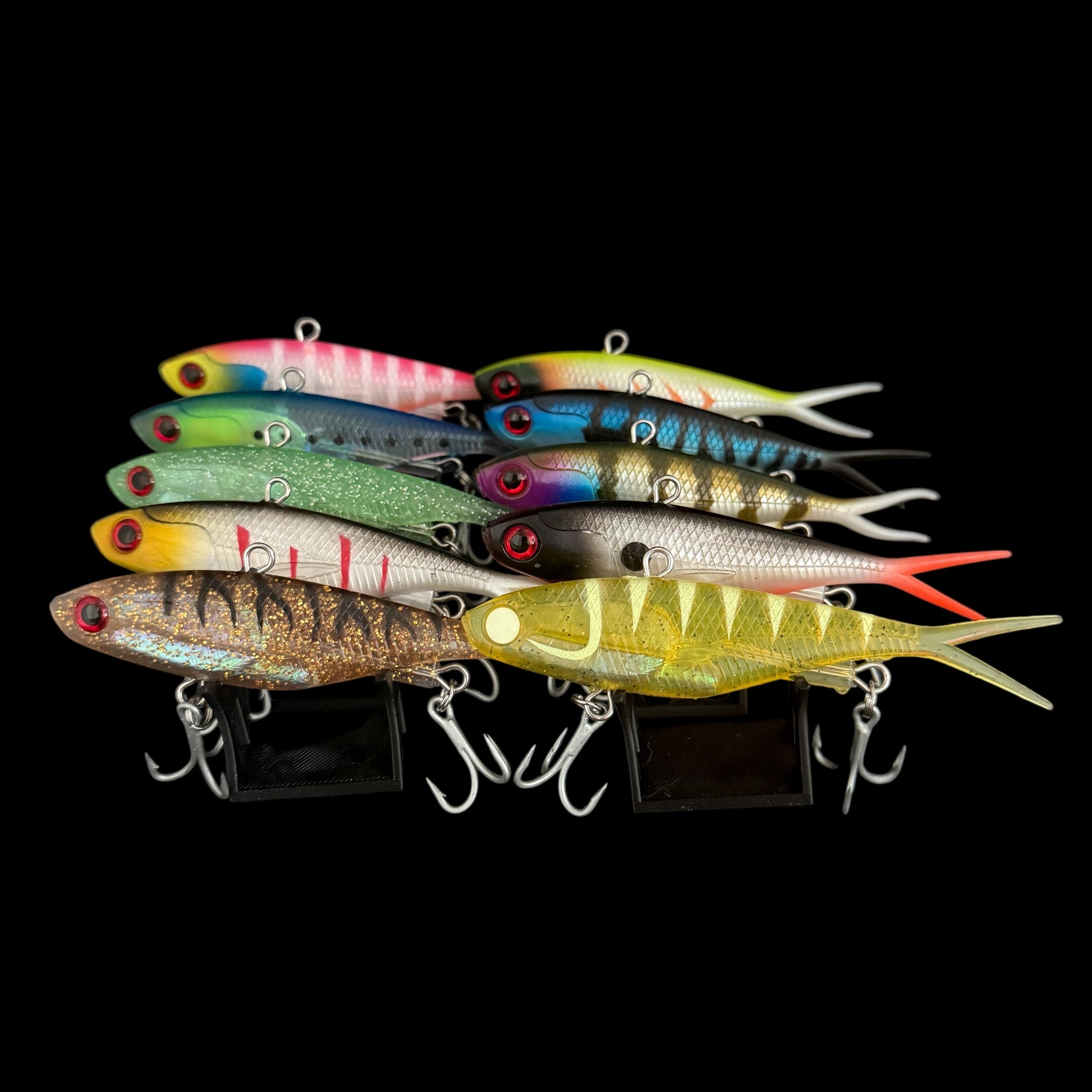 Loaded with hard-hitters, each 115mm lipless vibe in this pack is designed to throw long, sink fast, and get belted. Balanced to sit tight and run true, whether you’re hopping snags, cranking drains, or bombing ledges.